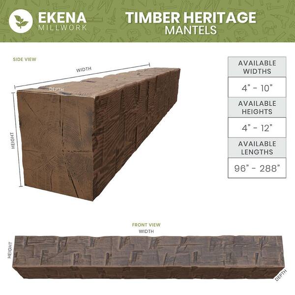 Heritage Timber Rustic Sawn 78 in. W x 9.5 in. D x 7.5 in. H Cap-Shelf Mantel