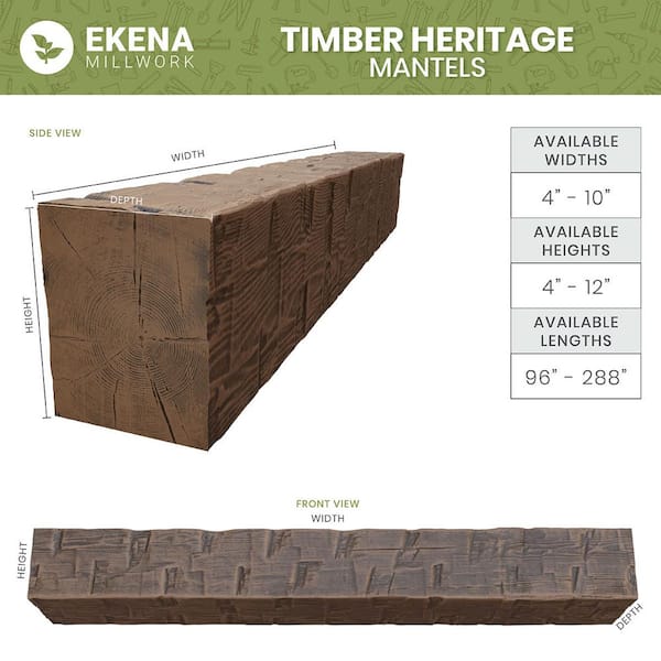 Heritage Timber Rustic Sawn 84 in. W x 7.5 in. D x 5.5 in. H Cap-Shelf Mantel