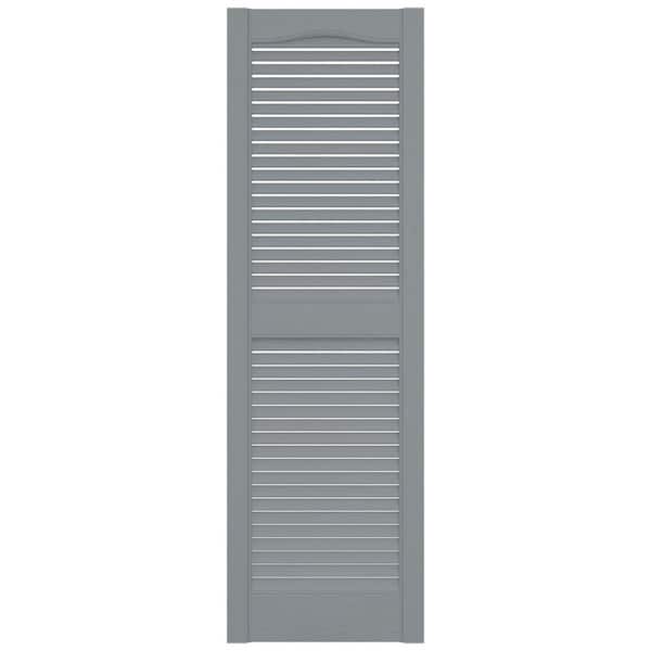 TailorMade 12 in. W x 76 in. H Louvered Vinyl Shutters Pair in Platinum
