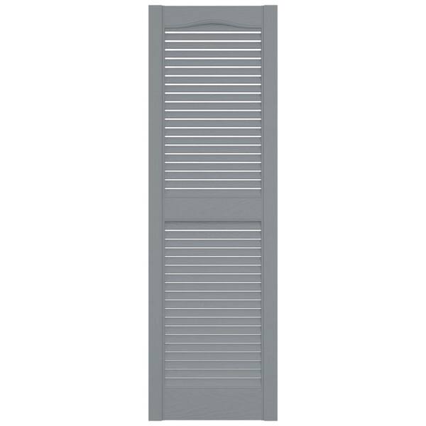 TailorMade 14.5 in. W x 56 in. H Louvered Vinyl Shutters Pair in Platinum