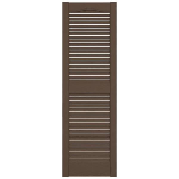 TailorMade 14.5 in. W x 63 in. H Louvered Vinyl Shutters Pair in French Roast
