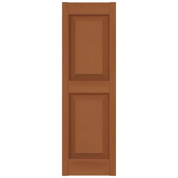 TailorMade 14.75 in. W x 74 in. H Raised Panel Vinyl Shutters Pair in Treated Cedar