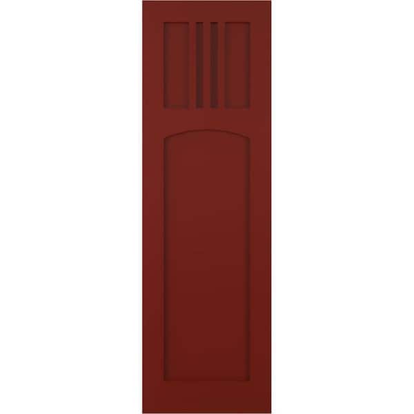 True Fit 12 in. x 33 in. Flat Panel PVC San Miguel Mission Style Fixed Mount Shutters Pair in Pepper Red