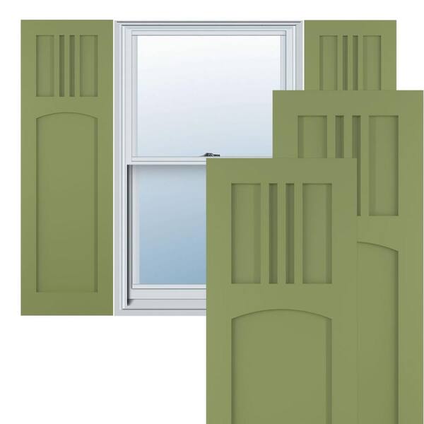 True Fit 12 in. x 34 in. Flat Panel PVC San Miguel Mission Style Fixed Mount Shutters Pair in Moss Green