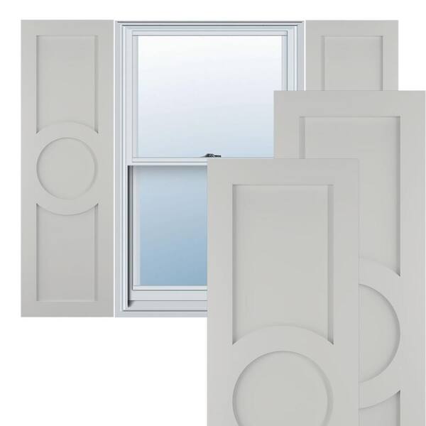 True Fit 12 in. x 62 in. PVC Center Circle Arts and Crafts Fixed Mount Flat Panel Shutters, Hailstorm Gray (Per Pair)