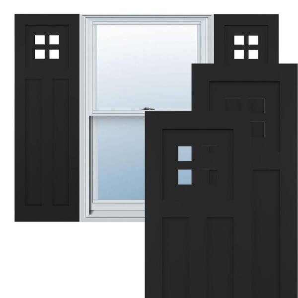 True Fit 12 in. x 78 in. Flat Panel PVC San Antonio Mission Style Fixed Mount Shutters, Black (Per Pair)