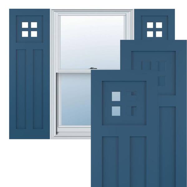 True Fit 15 in. x 26 in. Flat Panel PVC San Antonio Mission Style Fixed Mount Shutters, Sojourn Blue (Per Pair)