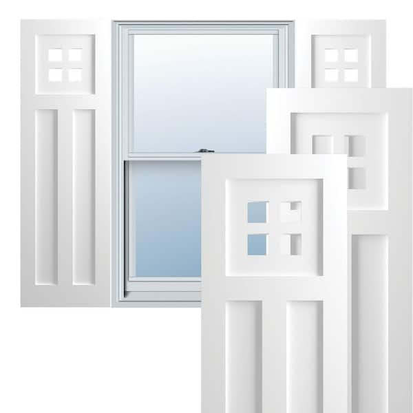 True Fit 18 in. x 36 in. PVC San Antonio Mission Style Fixed Mount Flat Panel Shutters, Unfinished (Per Pair)
