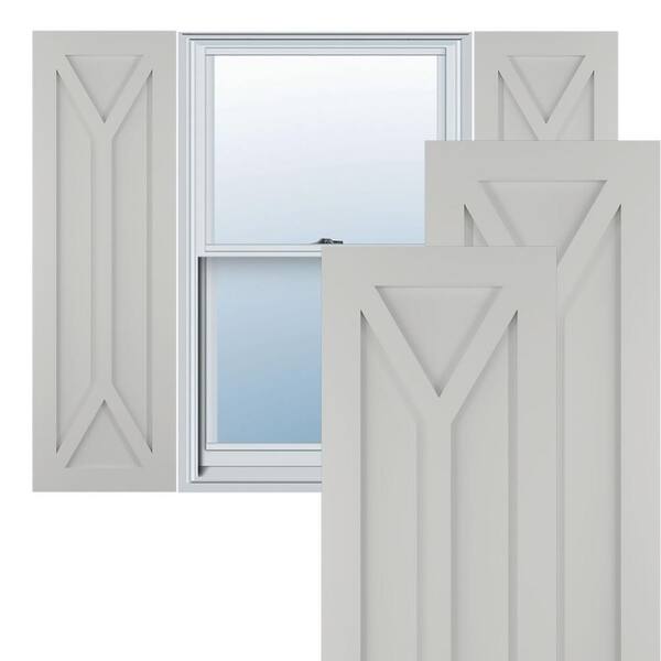 True Fit 18 in. x 68 in. Flat Panel PVC San Carlos Mission Style Fixed Mount Shutters Pair in Hailstorm Gray