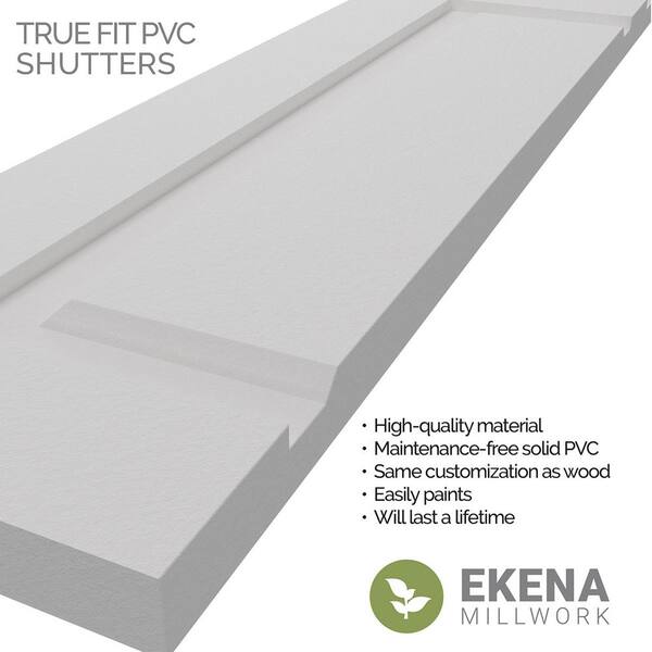 True Fit PVC 18 in. W x 34 in. H Raised Panel Vinyl Shutters Pair in Shadow Mountain