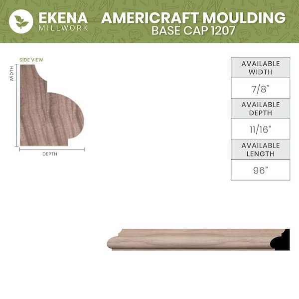 WM1207 11/16 in. D x 7/8 in. W x 96 in. L Americraft Solid Hardwood Stain Grade Base Cap Moulding, Pine