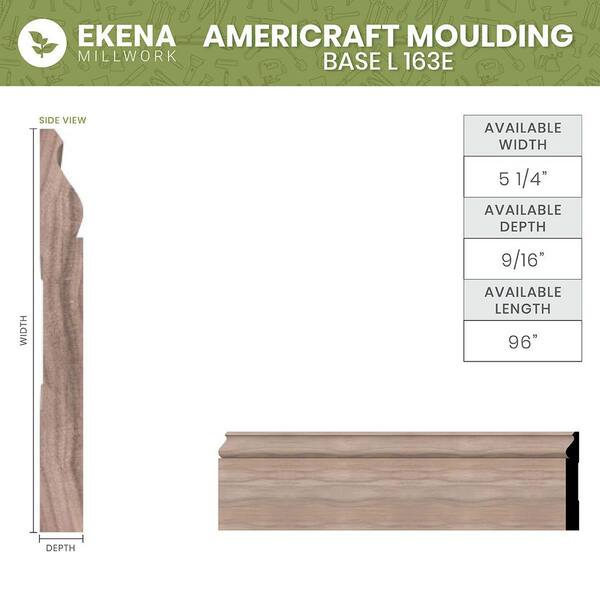 WM163 0.56 in. D x 5.25 in. W x 96 in. L Wood White Oak Baseboard Moulding