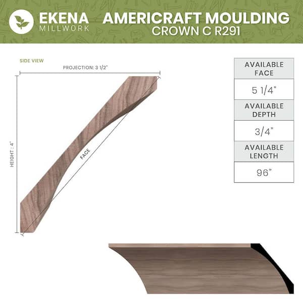 WM291 0.75 in. D x 5.25 in. W x 96 in. L Wood (White Oak) Crown Molding