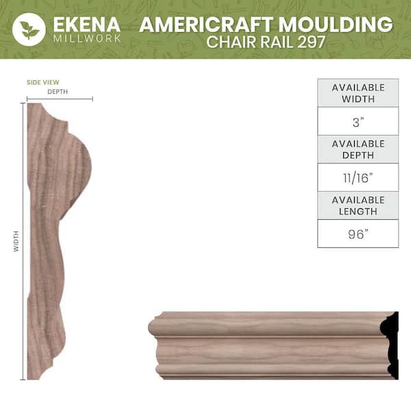 WM297 0.69 in. D x 3 in. W x 96 in. L Wood Walnut Chair Rail Moulding