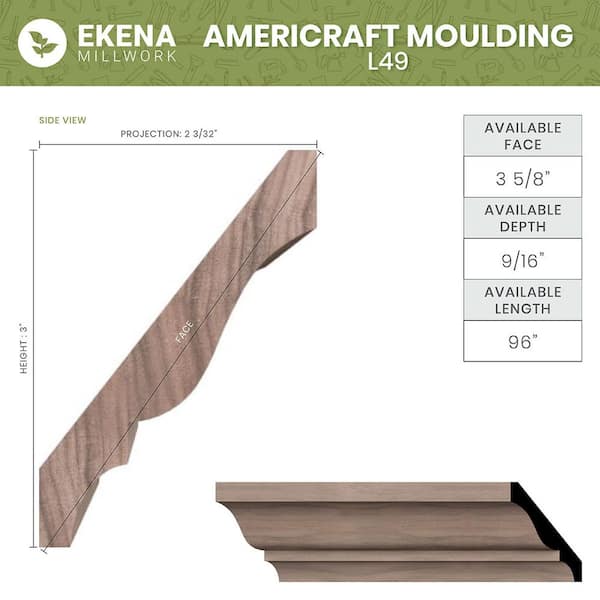 WM49 0.56 in. D x 3.63 in. W x 96 in. L Wood (Pine) Crown Molding