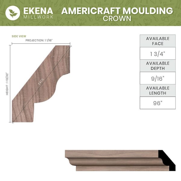 WM60 0.56 in. D x 1.75 in. W x 96 in. L Wood Poplar Crown Moulding