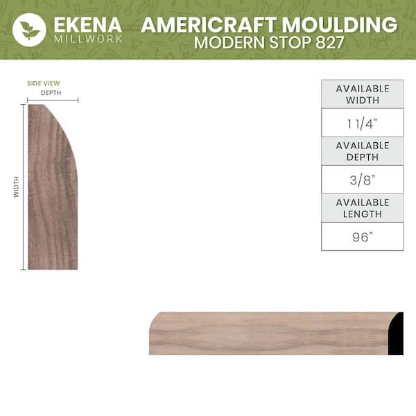 WM827 0.38 in. D x 1.25 in. W x 96 in. L Wood (White Oak) Modern Casing Moulding