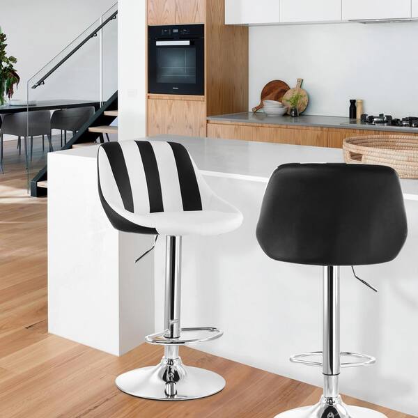 2-Piece Adjustable 40.5 in. ch Faux Leather Bar Stool in Striped Black and White with Chrome Base