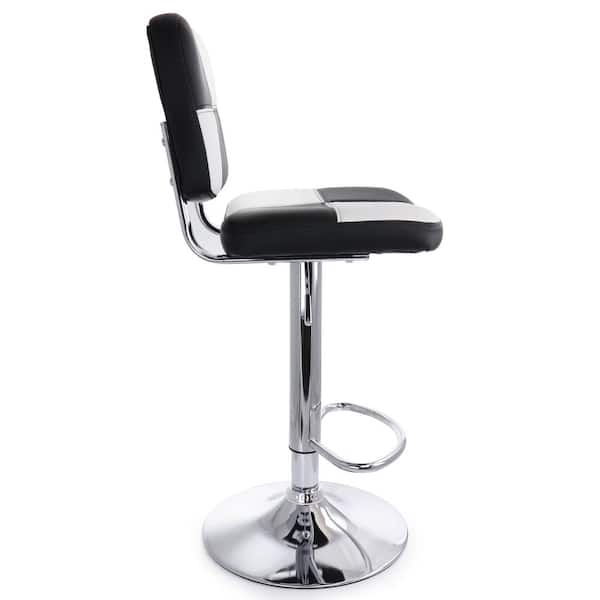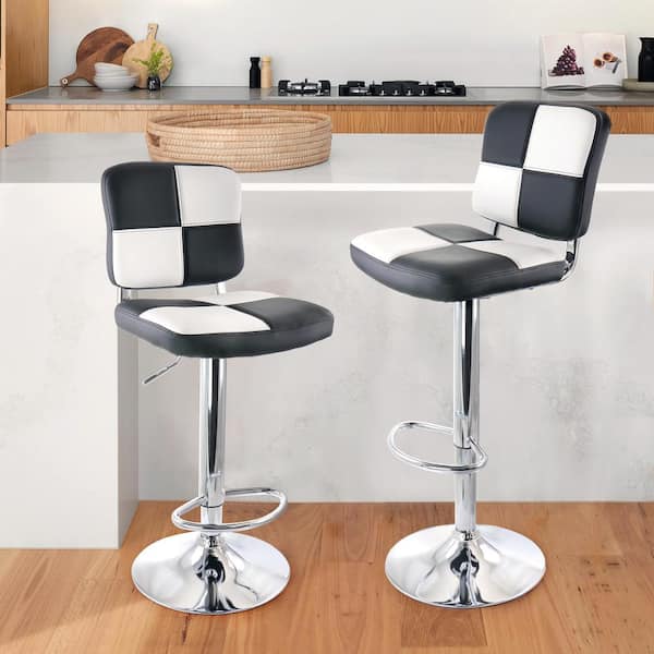 2 Piece Adjustable Faux Leather Bar Stool in Black and White with Chrome Base