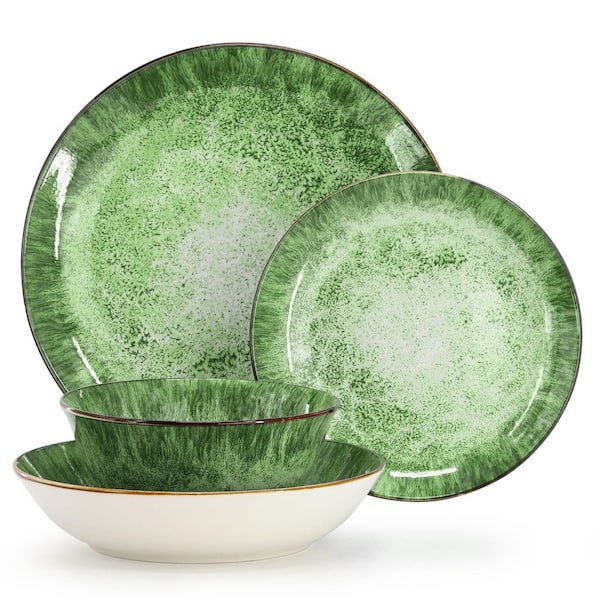 Oceanus 16 Piece Porcelain Double Bowl Dinnerware Set in Green