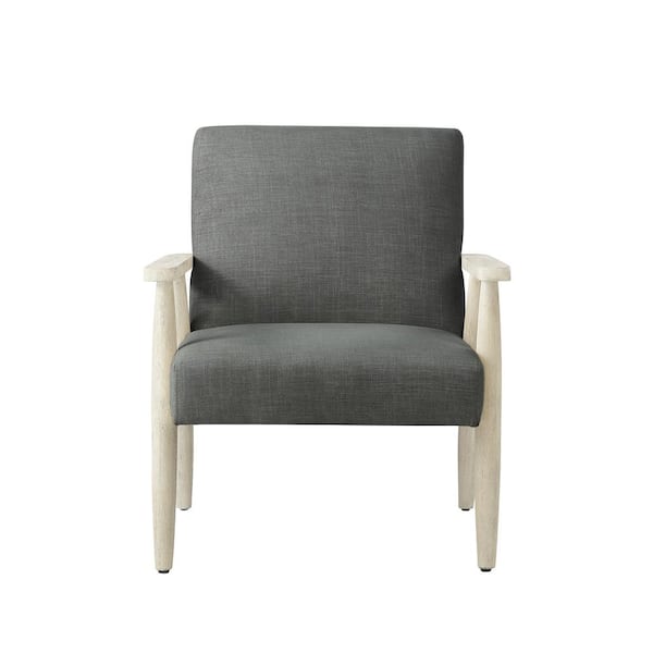 Elana Charcoal/Cream Upholstered Linen Arm Chair With Square Arm