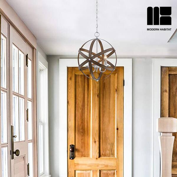 Elegance 60-Watt 3-Light Brown Pendant Light with No Bulbs Included