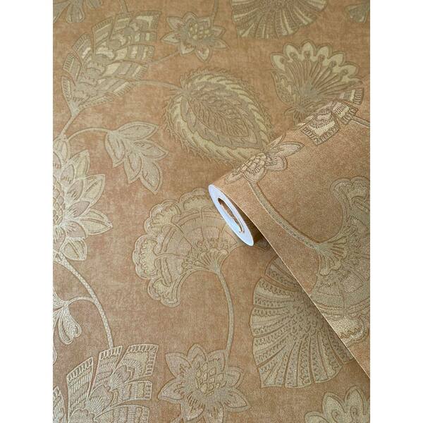 Elegance Collection Gold Flower Fan Sheen Finish Non-Pasted Non-Woven Wallpaper Roll