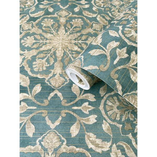 Elegance Collection Green Floral Stripe Shimmer Finish Non-Pasted Non-Woven Wallpaper Sample