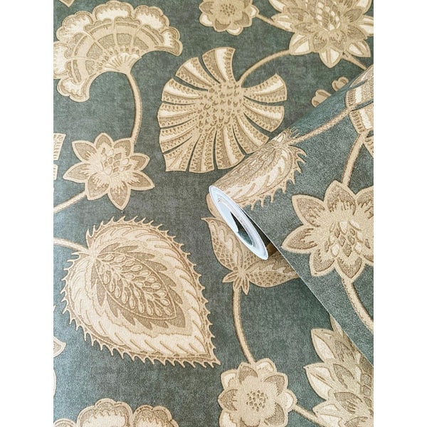 Elegance Collection Green Flower Fan Sheen Finish Non-Pasted Non-Woven Wallpaper Sample