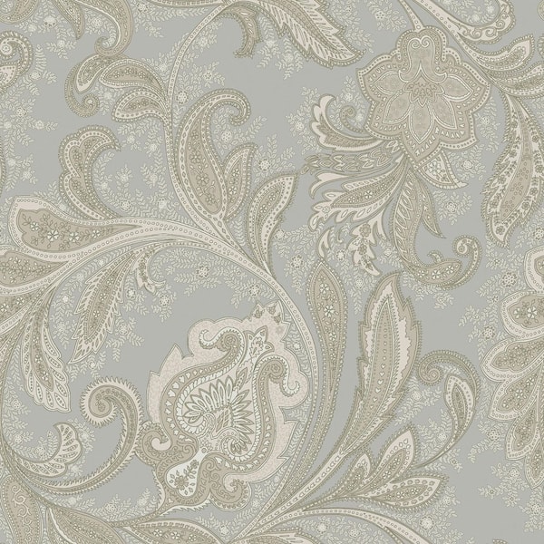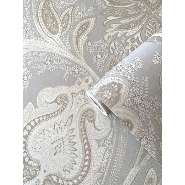 Elegance Collection Silver Paisley Design Pearlescent Finish Non-Pasted Non-Woven Wallpaper Sample