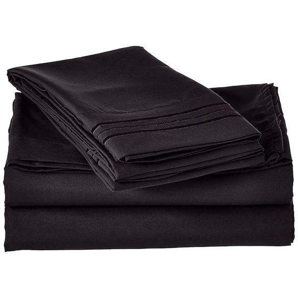4-Piece Black Solid Microfiber Queen Sheet Set