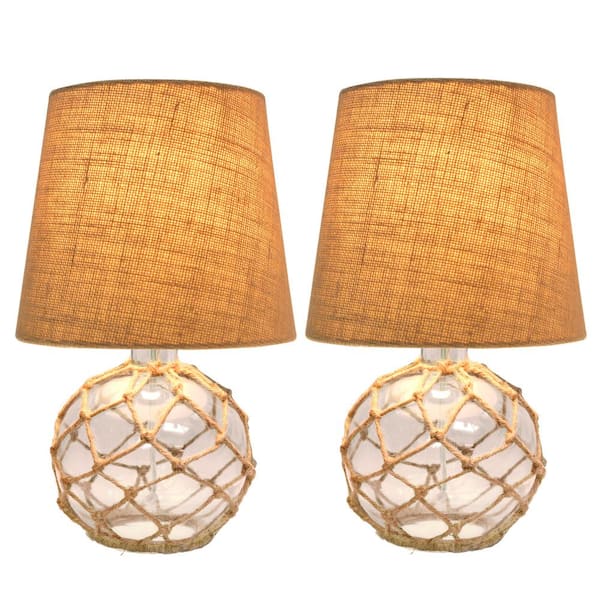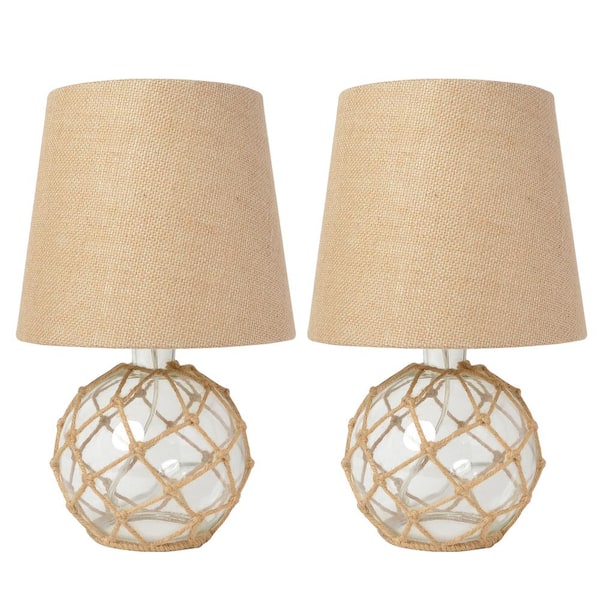 14.75 in. Buoy Rope 2-Pack Nautical Netted Coastal Ocean Sea Glass Table Lamp with Burlap Fabric Shade, Clear