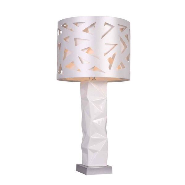 37 in. Modern Tall White Ceramic Designer Table Lamp with Geometric Shade