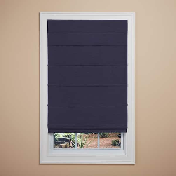 Navy Cordless Textured Room Darkening Fabric Roman Shade with Lining 35 in. W x 64 in. L