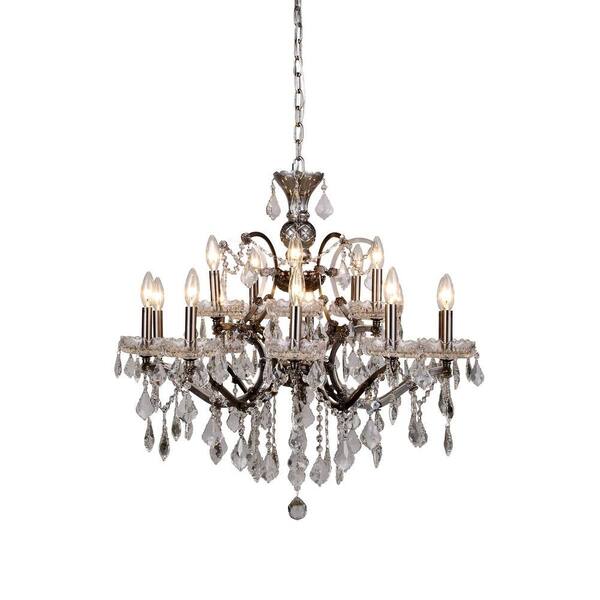 Elena 15-Light Raw Steel Royal Cut Crystal Clear Pendant