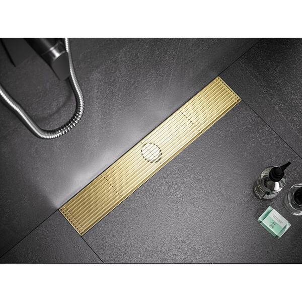 24 in. Linear Stainless Steel Shower Drain with Bar Pattern and Zirconium Gold Plating