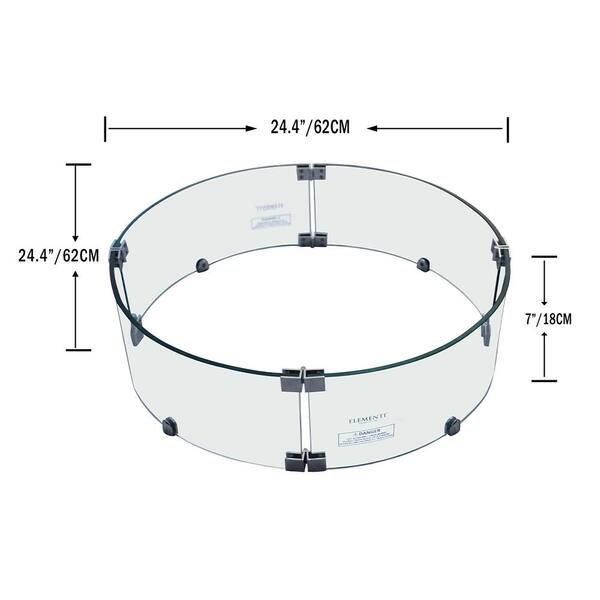 Boulder 25 in. x 7 in. Round Tempered Glass Outdoor Fire Pit Table Wind Screen with Stainless Steel Attachment Clips
