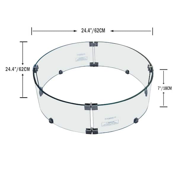 Columbia 25 in. x 7 in. Round Tempered Glass Outdoor Fire Pit Table Wind Screen with Stainless Steel Attachment Clips