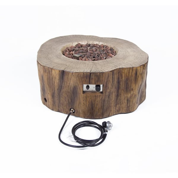 Manchester 40 in. x 17 in. Round Concrete Propane Fire Pit Table in Redwood with Burner and Lava Rock