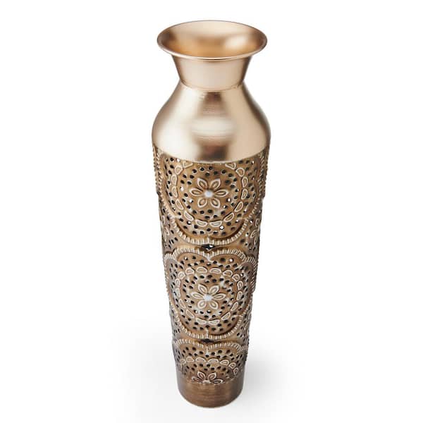 17 in. Gold Filigree Embossed Metal Amphora Vase