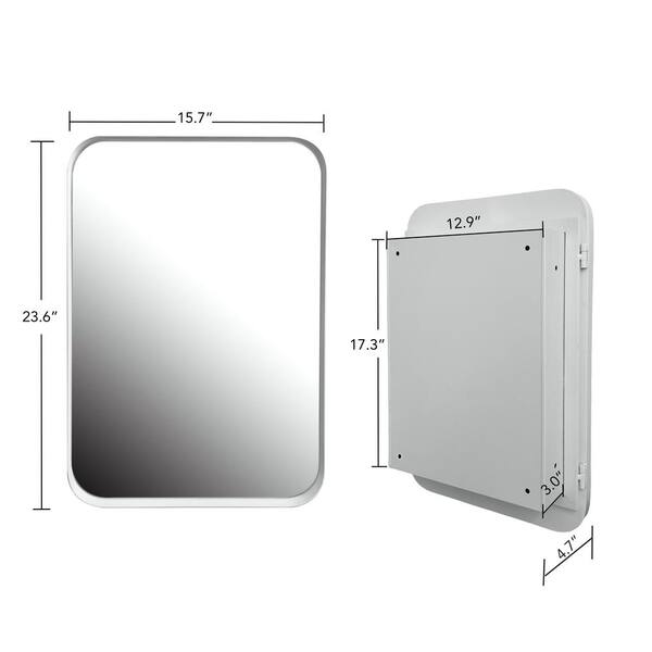 15.8 in. W x 23.6 in. H Recessed Rectangular White Metal Medicine Cabinet with Mirror