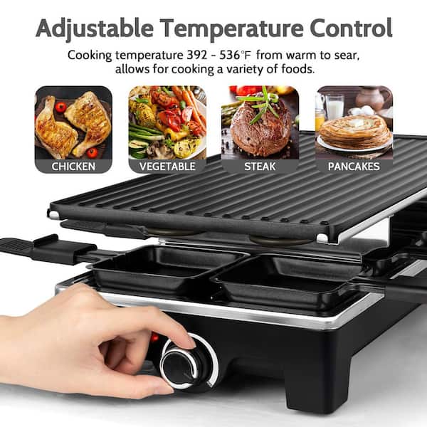 171 sq. in. Black Stainless Steel Removable 2-in-1 Non-Stick Smokeless Electric Indoor Grill with 8-Cheese Melt Pans