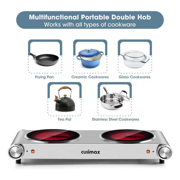 2-Burner 7.08 in.Silver Electric Hot Plate with Non-slip Rubber Feet