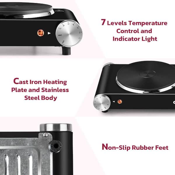 2-Burner 7.4 in. Black Electric Hot Plate with 7-Gear Temperature Controls