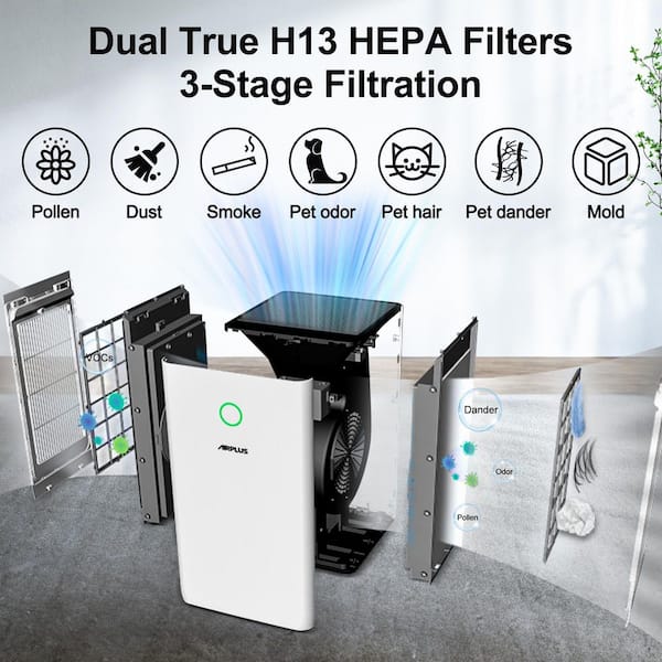 • Dual H13 HEPA filters for 99.7% PM2.5, powerful air purifier