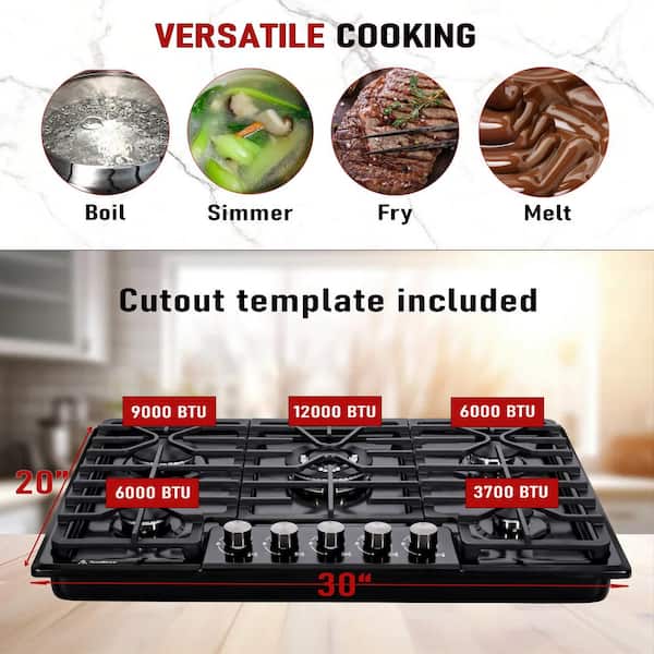 30 in. 5-Burners Recessed Gas Cooktop in Black Stainless Steel with Thermocouple Protection