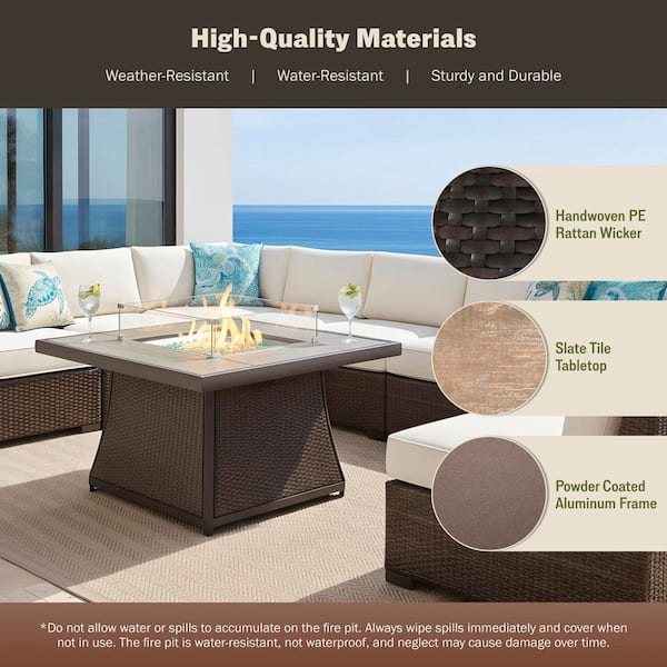 Elio 42 in. Rattan Tile Top Propane Gas Outdoor Patio Fire Pit Table with Aluminum Frame in Brown