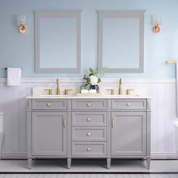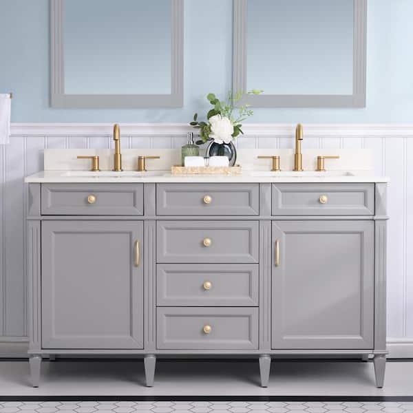 Elisa 60 in. W. x 22 in. D x 35 in. H Double Sink Freestanding Bath Vanity in Gray with Carrera White Quartz Top