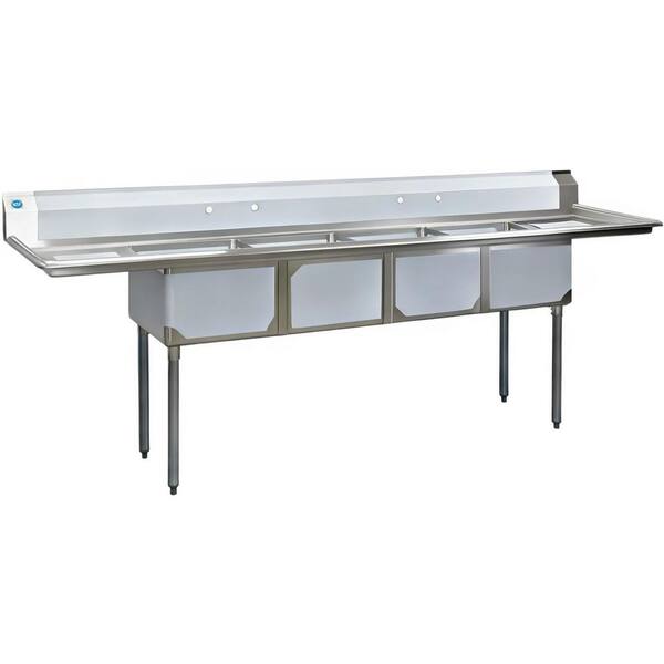 108 in. Freestanding Stainless Steel Commercial NSF 4 Compartments Sink EC4T1818LR with Drainboard 18-Gauge