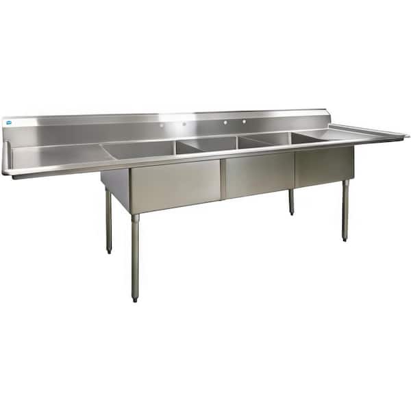 120 in. Freestanding Stainless Steel Commercial NSF 3 Compartments Sink EC3T2424LR with Drainboard 18-Gauge